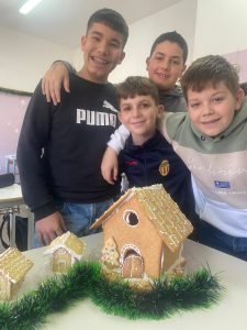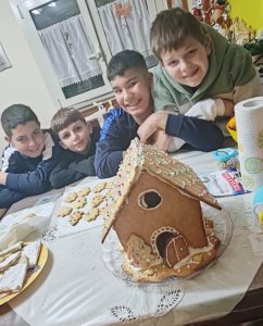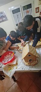 Gli alunni delle classi seconde della scuola secondaria di primo grado hanno realizzato delle casette di Natale (piccole case di pan di zenzero, di pasta frolla o di biscotti) mettendo insieme le loro conoscenze tecniche e alimentari. È un progetto scolastico divertente che unisce pratica e creatività!