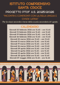 Inizierà giovedì 5 febbraio il progetto PTOF “Incontri e confronti con la/della lingua e civiltà latina” per le classi seconde e terze della scuola secondaria di primo grado.